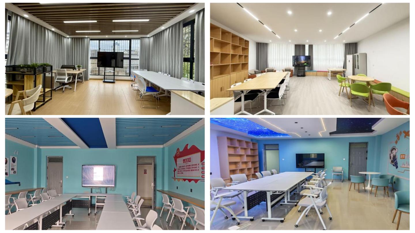 “寓”見系列服務(wù)空間按照“一室多能”的設(shè)計原則,打造了集黨團活動、談心談話、學(xué)業(yè)指導(dǎo)、就業(yè)服務(wù)、心理咨詢?yōu)橐惑w的復(fù)合型物理空間,為引導(dǎo)黨建力量、育人團隊、文化活動貼近學(xué)生開辟了新場域,打造了思政教育高地、師生交流陣地、文化交互基地、生活服務(wù)園地。