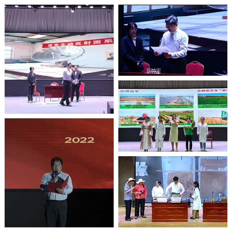 在科普情景劇環節,由建工學院師生創作并演出的《鹽堿地重生記—白荒變綠洲的治理密碼》《鋼索懸星河》《草方格—毛烏素沙漠的固沙密碼》三部榮獲國家級項目、省級獎項的劇目依次上演,將科學家精神融入舞臺藝術,生動展現了科學家在鹽堿地治理、鋼結構工程和沙漠固沙中的感人故事。現場師生反響熱烈,劇目的藝術感染力與科學精神的傳承在掌聲與感動中交織升華。