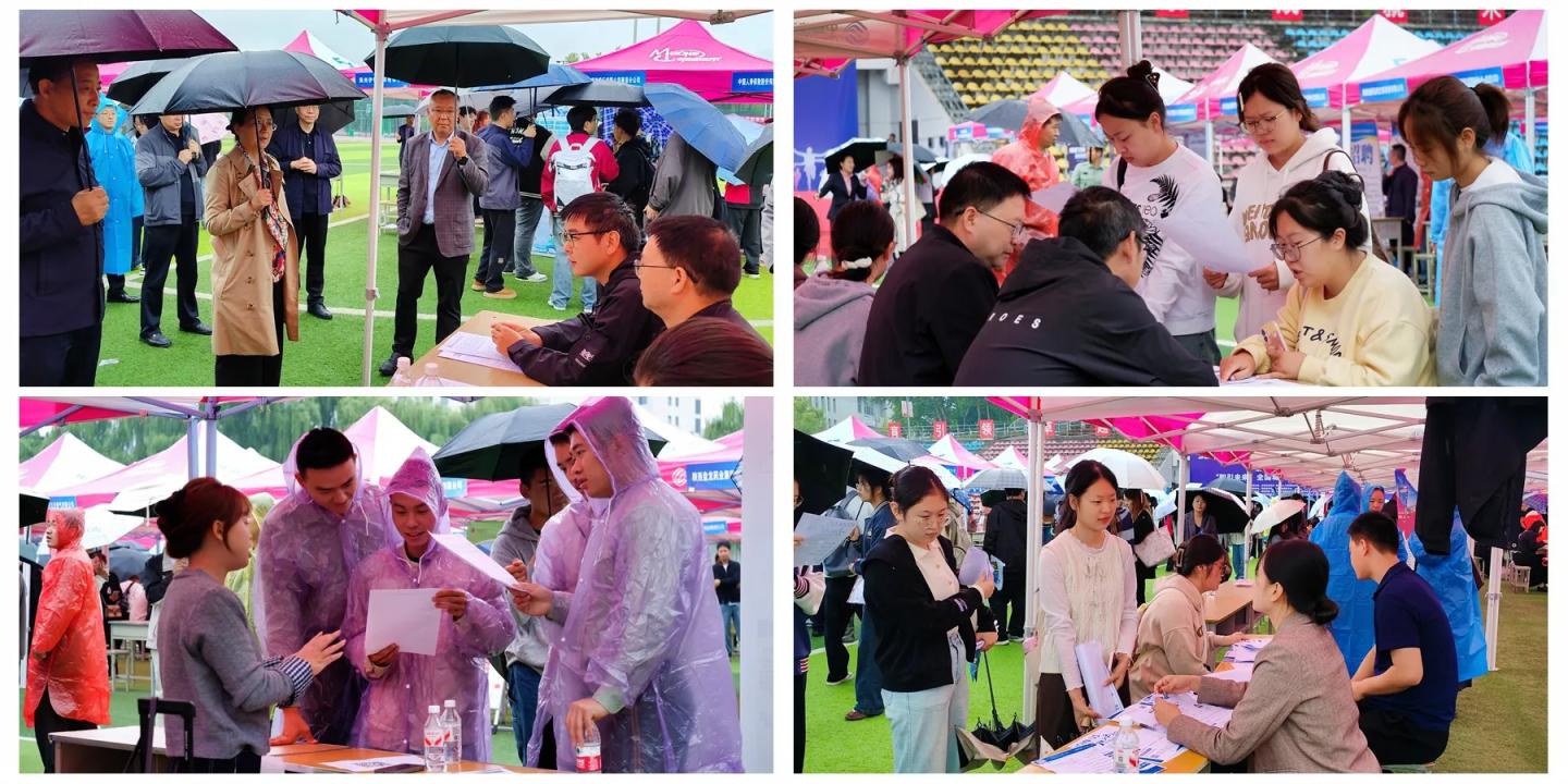 招聘會共邀請浙江澤悅信息科技有限公司、江蘇瑞爾隆鼎實業有限公司、西安瑞聯新材料股份有限公司等120余家用人單位來校參會,為畢業生提供涵蓋多個行業的有效就業崗位4000余個。盡管秋雨連綿,但現場組織有序、推進順利,畢業生與用人單位互動積極、氣氛熱烈。據統計,我校2143名2026屆畢業生及400余名商洛籍退役士兵、未就業畢業生參加招聘會,現場投遞簡歷2902份,初步達成就業意向214人。