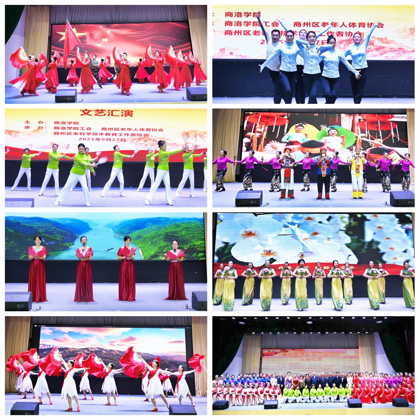 在“國慶”“中秋”雙節即將來臨之際,為弘揚愛國主義精神,營造節日氛圍,促進校地融合發展,9月27日上午,我校聯合商州區老年人體育協會、商州區老科學技術教育工作者協會共同舉辦了“商院家國情·雙節共歡慶”主題文藝匯演。校黨委副書記劉寶盈,商州區老體協主席楊會敏、副主席常會香,商州區老科協副主席王根牢,老年科技大學校長陳征民出席活動,校工會相關負責人、校內師生、老年朋友一同觀看了演出。