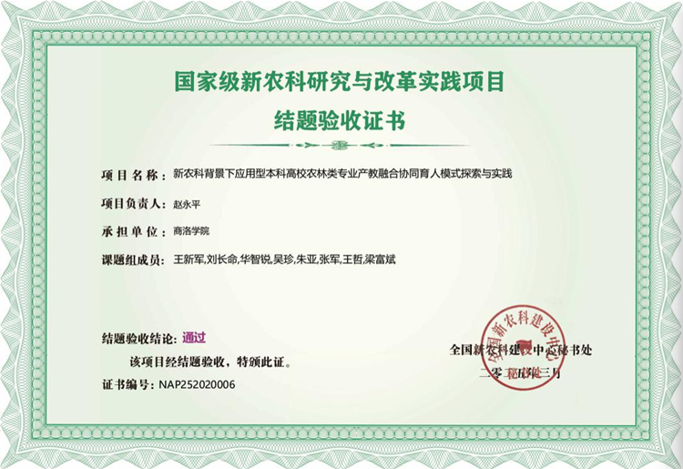 近日,教育部辦公廳發(fā)布了《教育部辦公廳關(guān)于公布新農(nóng)科研究與改革實踐項目結(jié)題驗收結(jié)果的通知》,我校趙永平教授主持的《新農(nóng)科背景下應(yīng)用型本科高校農(nóng)林類專業(yè)產(chǎn)教融合協(xié)同育人模式探索與實踐》項目順利通過驗收。據(jù)悉,2020年9月教育部共立項407個新農(nóng)科研究與改革實踐項目,經(jīng)專家網(wǎng)絡(luò)評審、專家會議評審等環(huán)節(jié),共有386個項目通過驗收。