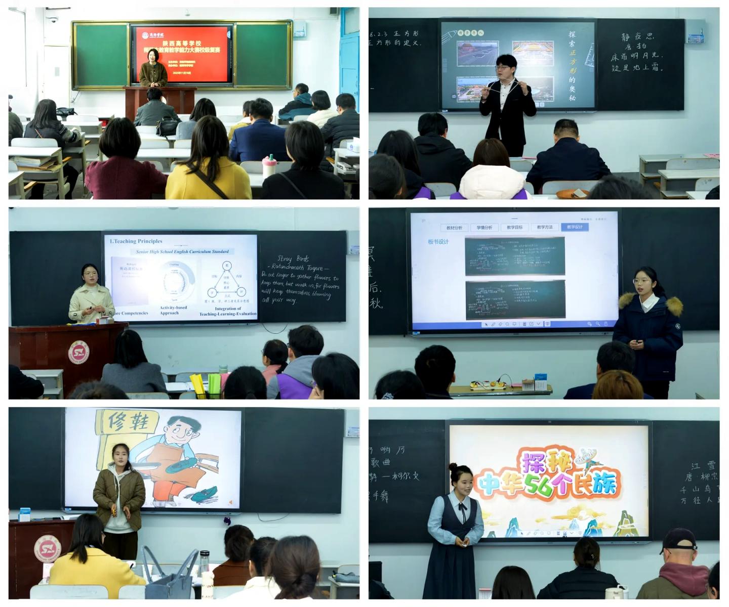為全面提升我校師范生綜合素養(yǎng)與實(shí)踐能力,積極構(gòu)建“以賽促學(xué)、以賽促練”的育人平臺,11月16日下午,我校舉辦第五屆陜西高等學(xué)校師范生教育教學(xué)能力大賽校級復(fù)賽。本次大賽特邀校內(nèi)18名師范專業(yè)教師擔(dān)任評委。教務(wù)處、教育科學(xué)學(xué)院負(fù)責(zé)人,相關(guān)指導(dǎo)教師及全體參賽選手參加了校級復(fù)賽。