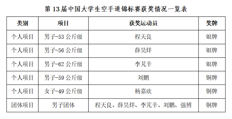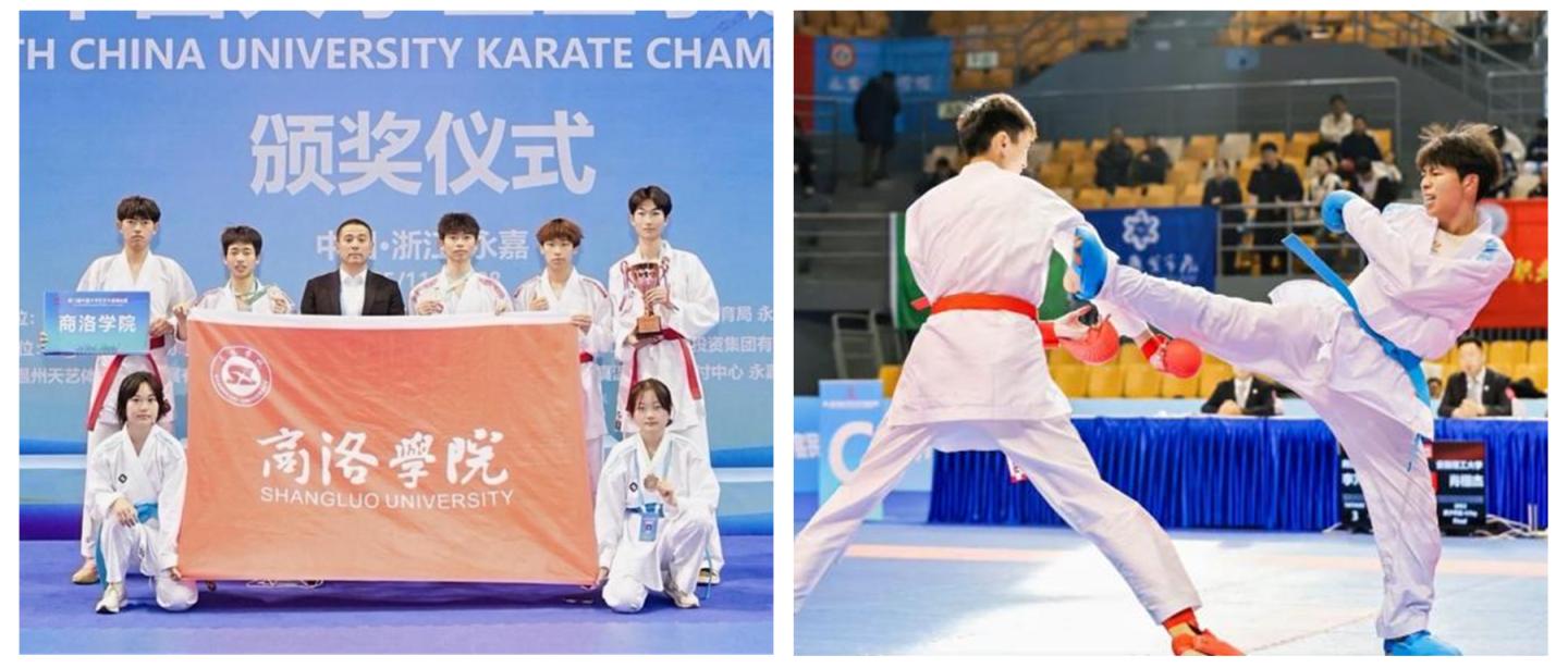 近日,在浙江省溫州市永嘉縣舉行的第13屆中國大學(xué)生空手道錦標(biāo)賽上,我校空手道代表隊(duì)奮勇拼搏、發(fā)揮出色,共獲得3枚銀牌、2枚銅牌及男子團(tuán)體銅牌。隊(duì)員范思宇榮獲“優(yōu)秀運(yùn)動員”稱號,體育教學(xué)研究部教師桑國鵬獲評“優(yōu)秀教練員”。