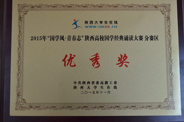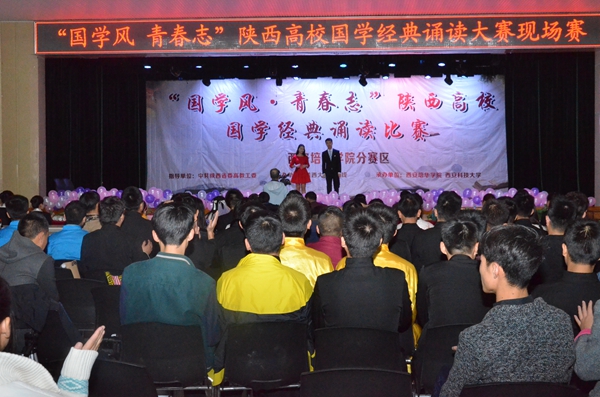 10月30日,我校師生代表參加了由陜西省委高教工委陜西大學生在線主辦的“國學風·青春志”國學經典誦讀賽,比賽在西安培華學院、陜西工業職業技術學院同時舉辦。全省共有16所高校33支隊伍參賽。由我校藝術學院王聰同學朗誦的《將進酒》獲得“國學風.青春志”陜西高校經典誦讀大賽分賽區優秀獎。