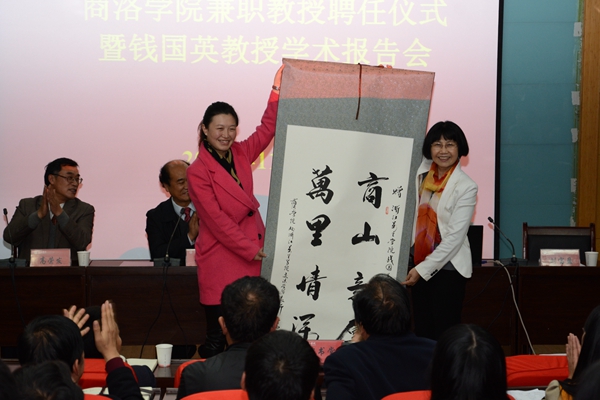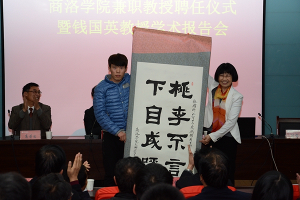 劉建林在聘任儀式上回顧了錢國英教授與我校的深厚情誼和對(duì)我校的熱情幫助,介紹了錢國英教授在高等教育教學(xué)研究方面的杰出成就。他說,商洛學(xué)院發(fā)展到今天,已經(jīng)完全融入到了本科教育的行列,正在以“穩(wěn)基、提質(zhì)、增速”,創(chuàng)新驅(qū)動(dòng)發(fā)展的新常態(tài),確保學(xué)校在中國高等教育深化改革的洪流中不落伍、出成績(jī)。在這個(gè)過程中,賈平凹先生,侯洵、劉加平院士,教育部本科教學(xué)研究中心吳博主任、錢國英校長(zhǎng)和西北大學(xué)高勝利教授等各界人士給予了我們巨大幫助與支持。我校師生員工要懂得感恩,牢記以錢國英教授為代表的專家學(xué)者對(duì)我們的幫助,把這些幫助轉(zhuǎn)化為工作動(dòng)力,在各自崗位上為學(xué)校的創(chuàng)新發(fā)展做出自己應(yīng)有的貢獻(xiàn)。