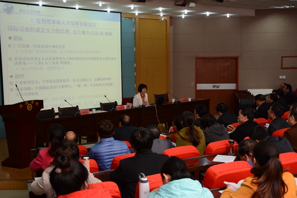 在學(xué)術(shù)報(bào)告中,錢國英教授從“應(yīng)用型本科人才培養(yǎng)目標(biāo)定位、培養(yǎng)體系構(gòu)建與專業(yè)綜合改造、創(chuàng)業(yè)教育與專業(yè)教育深度融合”三個(gè)方面入手,詳細(xì)介紹了浙江萬里學(xué)院應(yīng)用型人才培養(yǎng)、課程教學(xué)體系改革和創(chuàng)新創(chuàng)業(yè)教育的具體做法和成功經(jīng)驗(yàn)。