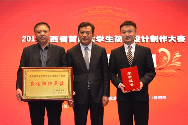 11月27日,陜西省首屆大學生簡歷設計制作大賽總決賽在西安文理學院舉行,我校有5名學生進入總決賽。經過專家評審,電信學院學生李浩榮獲二等獎,經管學院學生徐娜,文傳學院學生梁娟、程競爽榮獲最佳網絡人氣獎;我校同時榮獲大賽最佳組織單位獎,招生就業處楊建峰榮獲優秀指導教師獎。