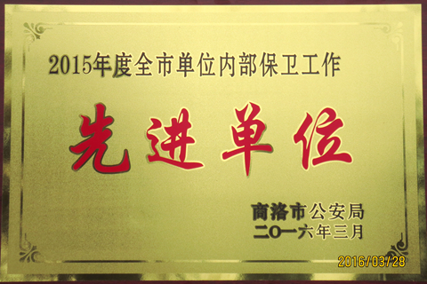 我校獲商洛市“2015年度全市單位內(nèi)部保衛(wèi)工作先進(jìn)單位”榮譽(yù)稱號(hào)