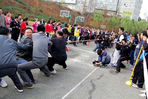 4月7日,我校教職工拔河賽在校籃球場舉行。為了豐富職工文化生活,緩解緊張忙碌的工作壓力,展示團隊協作和拼搏精神,來自全校12個分會400余名教職工參與了拔河比賽。