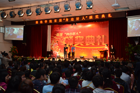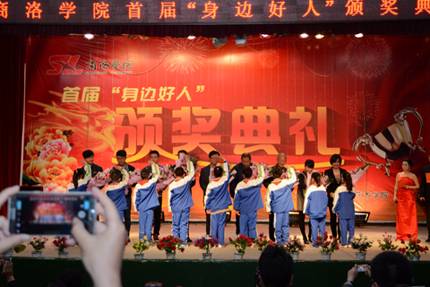 4月15日,我校舉辦首屆“身邊好人”頒獎典禮,于浩世等9位師生中涌現出的“身邊好人”登臺亮相。商洛市委常委、宣傳部部長劉淑慧,校黨委書記、校長劉建林等分別為他們頒獎。商洛市委宣傳部副部長、文明辦主任李丹峰,市文明辦副主任黃強,校領導范新會、王思懷、魏書堂,處科級干部、全體輔導員及師生代表400余人參加了頒獎典禮。