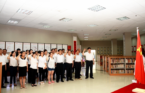 在鮮艷的黨旗下,全體黨員莊嚴地重溫了入黨誓詞。