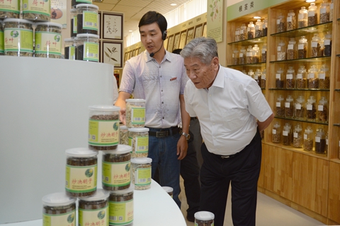 在植物學優勢學科展室,趙鵬大院士詳細了解了我校培育的小麥新品種和現代中藥產品,品嘗了我校開發的“商山養生紅”保健酒。他建議我校深入研究整理商洛區域土壤水質特性,有針對性地研發具有地域特色的良種和農藥、肥料等產品。