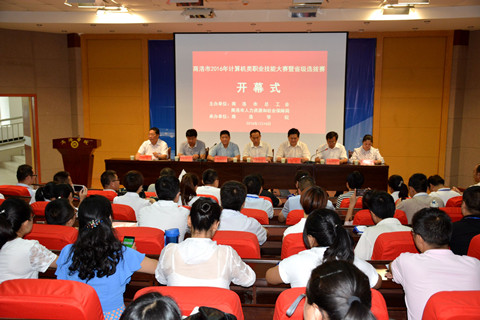 7月16日,由我校承辦的商洛市2016年計算機類職業技能大賽在我校舉行。商洛市人大常委會副主任、市總工會主席李選良宣布大賽正式開始。校黨委副書記、副校長范新會,商洛職業技術學院黨委書記、商洛市人力資源和社會保障局局長楊萌出席開幕式。我校教務處、繼續教育學院及商洛市總工會、商洛市人力資源和社會保障局等相關負責人參加開幕式。大賽開幕式由商洛市總工會常務副主席張新發主持。