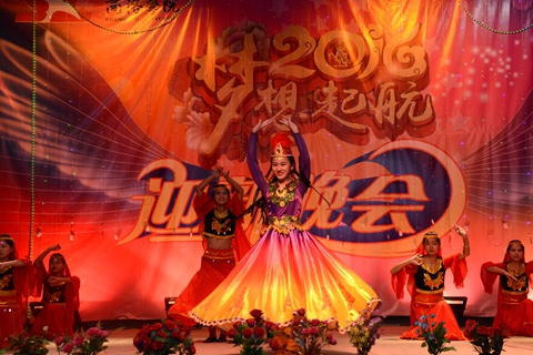 本次晚會以“夢想起航”為主題,在歌伴舞《陽光路上》婀娜多姿的舞蹈中拉開帷幕。整場晚會形式多樣,現代與古典同臺,聲樂與器樂相和,浪漫與詼諧相伴。歌舞、相聲、魔術、樂器獨奏等精彩的節目為觀眾呈現了一場豐盛的視聽盛宴。由藝術學院選送的笛子獨奏《揚鞭催馬運糧忙》笛聲悅耳、美妙動聽,使觀眾感受到了商洛學院人的奮斗精神與青春氣息。生物學院選送的腰鼓表演《歡天喜地迎新生》與化材學院選送的陜北名歌《東方紅》,具有濃厚的地方特色,展現出了我校學子多才多藝、昂揚向上、勇于創新的精神風貌。晚會在藝術學院教師王娜娜等帶來的歌伴舞《復興之歌》中步入了高潮,最終在陣陣掌聲中完美謝幕。