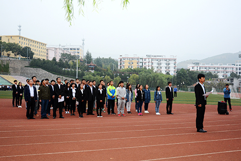 數學與計算機應用學院學生高升作了國旗下的講話。他代表全校學生莊嚴承諾:在國慶校慶到來之際,將愛國、科學、民主、進步作為座右銘,以飽滿的熱情、昂揚的斗志刻苦學習、苦練本領,以優異成績回報祖國、回報母校!