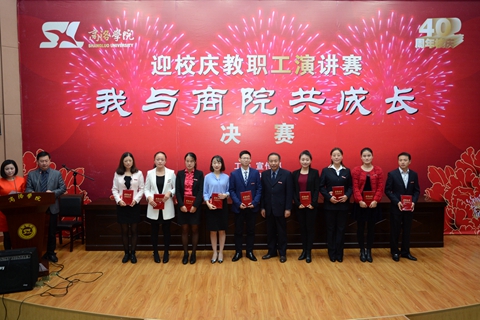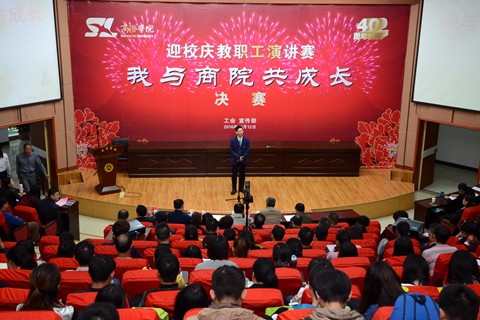 10月12日下午,由工會、宣傳部舉辦的“我與商院共成長”主題演講比賽進行了決賽。來自工會各分會的9名選手逐一登臺演講,最終文傳學院教師鐘思遠奪得一等獎。校黨委委員、紀委書記王思懷觀看了比賽并為獲獎選手頒獎。各二級學院、相關職能部門師生代表近500人觀摩了比賽。