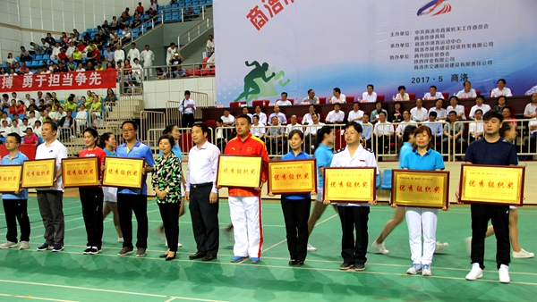 商洛市市直機關第三屆“城投杯”職工運動會于5月5日至5月17日在商洛市體育館舉行,我校黨委副書記彭虎軍出席運動會開幕式和閉幕式,并為獲獎運動員頒獎。