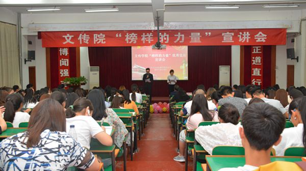 ——文傳學院黨總支召開“榜樣的力量”優秀黨員宣講會。宣講會上,7名優秀學生黨員分別宣講了自己的先進事跡。用筆和真心書寫精彩校園生活的王蒙,被譽為老師得力助手的優秀學生干部鄭欣,多面能手全面發展的優秀學生黨員白日東,多次獲得省級以上榮譽的優秀學生黨員劉慧敏,學習標兵考研成績優異的高秀敏,會學習、善應用的學生干部齊佳,學校優秀宣傳骨干趙睿榕,分別從參與新聞宣傳、對外交流、服務同學等工作實踐和自身成長感悟等方面講述了他們的大學生活經歷以及取得的成績,充分展示了學生黨員的青春風采。