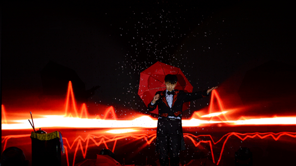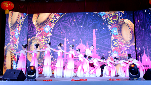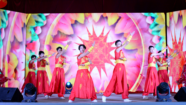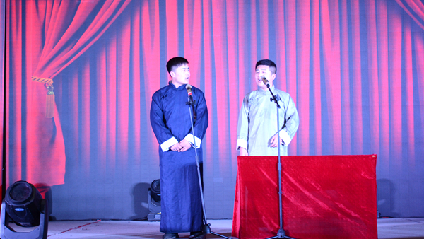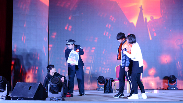 整場晚會形式多樣、豐富多彩,包括歌曲、舞蹈、相聲、啞劇、魔術、朗誦等18個節目。晚會在舞蹈《花開中國年》中拉開序幕。舞蹈《夢桃仙》將京劇元素融入排舞動作,歡快多姿、俏麗生動;相聲《我愛歌曲》語言風趣幽默,帶動了全場氣氛;歌曲《光榮》謳歌了十九大描繪的偉大新時代,唱出了中國人自豪光榮的國家情懷;武術表演《秦武風采》鏗鏘有力,一招一式中盡顯中華雄風;朗誦《永恒的情懷》感情真摯感人,感嘆青春芳華,表達了莘莘學子立志揮灑青春、奉獻祖國的豪情壯志;魔術《紅白幻象》千變萬化、精彩神奇,將觀眾帶入了奇幻的世界。