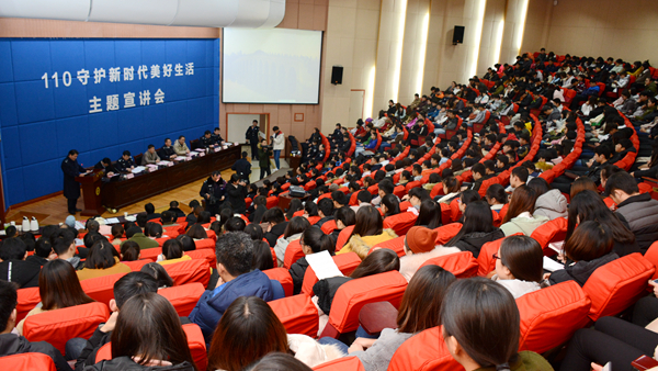 范新會代表學校對市公安局110平安校園宣講活動走進我校表示熱烈歡迎,對商洛各級公安機關長期以來對我校各項工作的支持表示感謝,并向與會人員介紹了我校的發展歷程和平安校園工作的開展情況。他表示,我校長期以來始終堅持將維護校園安全穩定擺在首要位置,把保障師生正常教學生活秩序和身心健康作為履行高校職能、服務決勝全面建成小康社會的重要工作。市公安局商州分局在我校校園內建立警務室,在校門外設立流動警務崗,強化校園周邊整治,嚴打涉校犯罪,有力維護了校園穩定和師生人身安全,為廣大師生創造了平安祥和的生活環境,希望商洛市公安局繼續加強與我校長期、良性的互動,進一步強化校園周邊的綜合治理和治安巡防,傾心守護師生安全,為我校改革發展保駕護航。