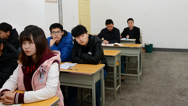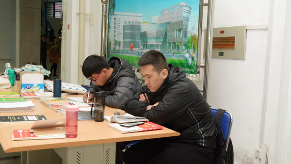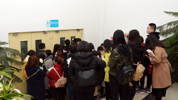 勤奮的莘莘學(xué)子早早到來(lái),等候圖書館開放。