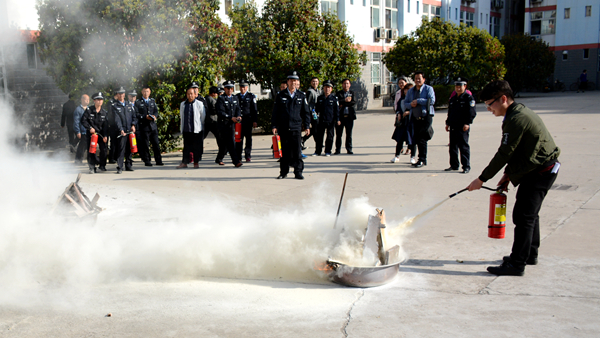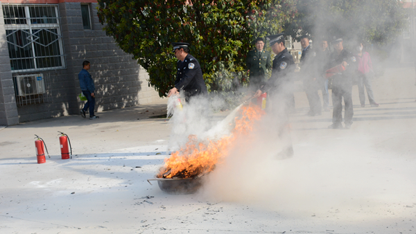 隨后,安東超帶領實驗員、校警及公寓管理員在11號公寓樓前進行滅火器材實際操作演練,給我校師生上了一堂生動形象的消防安全知識培訓課。