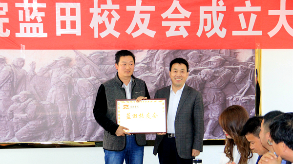 彭虎軍代表校友總會為藍田校友會授牌授旗并頒發聘書,校友總會辦公室主任郭英勇宣讀了藍田校友會批復和聘任文件,藍田校友會秘書長邵舉樂宣讀了《藍田校友會章程(試行)》,大會由副會長賀娜娜主持。