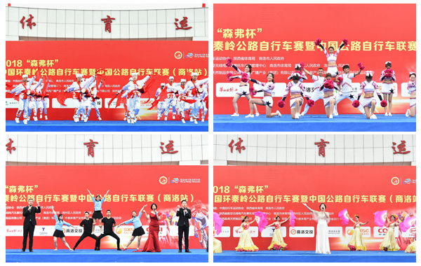 5月29日,2018“森弗杯”中國環秦嶺公路自行車賽暨中國公路自行車聯賽(商洛站)成年女子組個人賽開賽,我校黨委書記龍治剛為其鳴槍發令,黨委副書記彭虎軍也到場為選手們加油助威。我校200余名師生在商洛市體育館舉行了專場文藝演出,積極助力本次環秦嶺自行車賽。