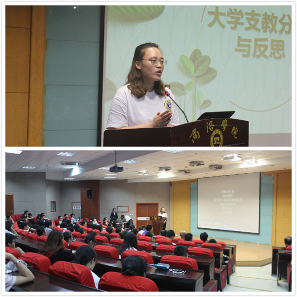 本期“道德講堂”由唱歌曲、誦經典、學模范、談感想、送吉祥五個環節組成。活動現場師生熱情洋溢,齊唱《公民道德歌》,拉開活動的序幕。隨后,在學生代表的引領下,全體師生共同誦讀《朱子家訓》,感受傳統道德經典的魅力。在場師生還一起觀看了第六屆全國道德模范、敬業奉獻類模范代表廖俊波同志的先進事跡視頻資料。信管1501班學生艾佳華現場分享了自己3年來公益支教的心得感悟,并給大家展示了自己所在的公益團隊“鄉間里”視頻,展現新時代大學生高尚的道德追求。