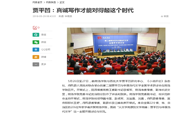 5月26日至27日,由我校與西北大學(xué)賈平凹研究中心、《小說(shuō)評(píng)論》雜志社、丹鳳縣人民政府聯(lián)合舉辦的第二屆賈平凹與中國(guó)當(dāng)代文學(xué)全國(guó)學(xué)術(shù)研討會(huì)在我校召開。來(lái)自全國(guó)22個(gè)省(直轄市、自治區(qū))的200余位專家學(xué)者齊聚我校,同時(shí)還吸引了全國(guó)媒體記者的目光。人民網(wǎng)、光明網(wǎng)、中國(guó)社會(huì)科學(xué)網(wǎng)、中國(guó)作家網(wǎng)、搜狐網(wǎng)、陜西日?qǐng)?bào)、陜西省教育廳網(wǎng)站、陜西網(wǎng)、文化藝術(shù)報(bào)、三秦網(wǎng)、三秦都市報(bào)、華商網(wǎng)、西北信息報(bào)、商洛日?qǐng)?bào)、商洛市人民政府、商洛廣播電視臺(tái)、商洛新聞網(wǎng)等中央、省、市媒體和參會(huì)代表所在單位進(jìn)行了報(bào)道,一些微信、微博等自媒體也紛紛報(bào)道和轉(zhuǎn)發(fā)。通過報(bào)道,賈平凹的文學(xué)世界進(jìn)一步為更多讀者所了解,賈平凹的文學(xué)藝術(shù)進(jìn)一步在更廣闊的空間傳播,積極促進(jìn)了商洛乃至陜西文學(xué)事業(yè)的繁榮發(fā)展,擴(kuò)大了我校的知名度和影響力。