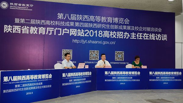 在做好現場招生咨詢工作的同時,我校積極參加組委會舉辦的“陜西省教育廳門戶網站2018高校招辦主任在線訪談”活動,與考生及家長進行面對面交流。