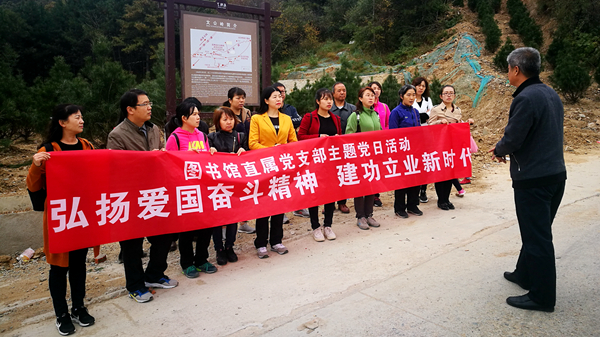 圖書館直屬黨支部帶領全館職工以“弘揚愛國奮斗精神,建功立業新時代”為活動主題,先后參觀了葛牌鎮蘇維埃政府紀念館、文公嶺戰斗舊址。在蘇維埃政府紀念館,大家一起參觀了革命烈士事跡展覽室,重溫了中國工農紅軍第二十五軍在葛牌浴血奮戰,成立“蘇維埃政府”的光輝歷史。在著名的文公嶺戰斗舊址的戰斗紀念碑前,大家追憶了80多年前發生在此地的激烈戰役,凝視著一幅幅真實的老照片,瞻仰著一件件珍貴的革命遺物,聆聽著一個個感人的革命故事,仿佛回到了那風雨如磐的革命年代。大家紛紛表示,今后將銘記那些為國家和人民拋頭顱、灑熱血的革命先烈,立足崗位,履職盡責,在平凡的崗位上做出不平凡的業績,以實際行動為學校改革發展貢獻力量,讓商洛這塊紅色熱土再添新時代的輝煌。