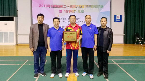 11月10日,由省教育廳主辦,省學生體育協會、西安交通大學承辦的2018年陜西省第二十三屆大學生乒乓球錦標賽暨“校長杯”比賽在西安交通大學落下帷幕。由我校黨委書記龍治剛、黨委副書記彭虎軍、副校長劉寶盈、副校長劉勇組成的代表隊獲得“校長杯”乒乓球團體賽第五名,是我校參加“校長杯”乒乓球比賽以來的最好成績。