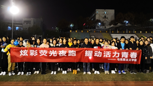 ——熒光夜跑活動。11月26日晚,馬克思主義學(xué)院在學(xué)校操場舉辦以“炫彩熒光夜跑,耀動青春活力”為主題的夜跑活動,200多名師生參加了此次活動。活動開始后,師生們手帶熒光環(huán)、揮舞熒光棒,在慢跑中欣賞夜色中的校園,用自己的青春和活力為校園增添靚麗風(fēng)景。夜跑結(jié)束后,大家還一起進行了有趣的互動游戲,在歡樂的氛圍中享受運動的樂趣,增進彼此的友誼。