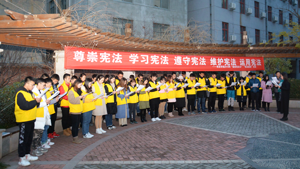 參加活動的師生一致認為,普法是國家安康的基石,守法是為人處世的根本。對于大學生來說,遵守憲法先要從小事做起,從一點一滴做起,從遵守校規校紀做起,規范自己的日常行為;要學習好法律知識,遵守法律規范,保護自己的權益,也不損害他人和社會的利益。要把法治思維宣傳給周圍的人,培育法治信仰,堅守做人底線,使我們的生活更和諧、更平安、更幸福!