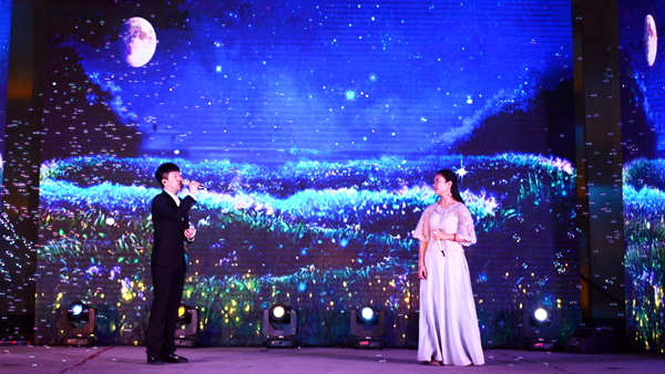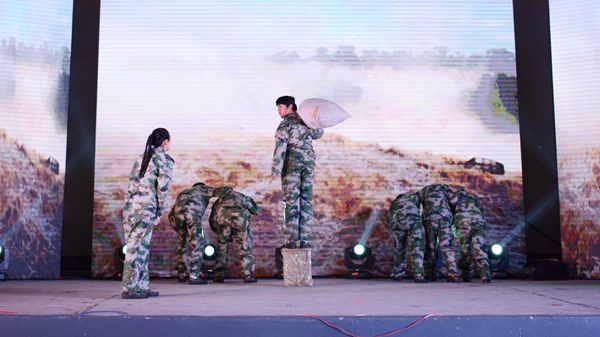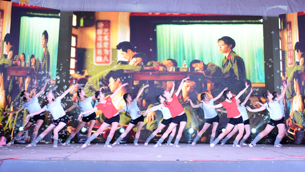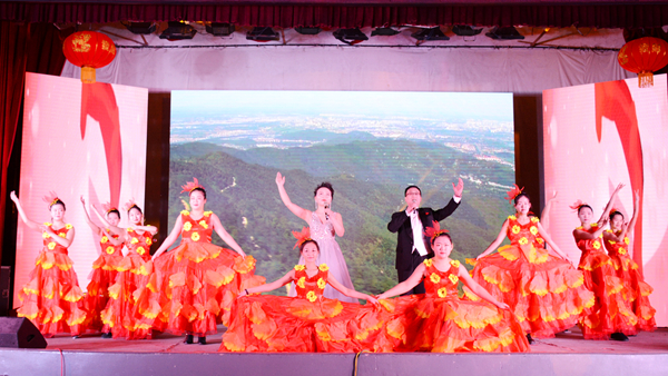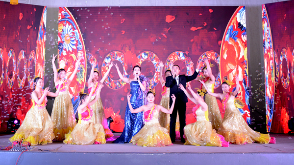 晚會結束后,校領導與全體演職人員合影留念。