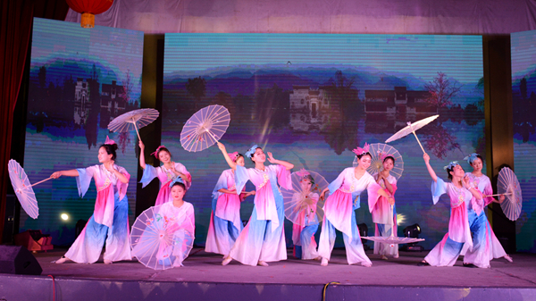 當晚的大學生活動中心張燈結彩,喜氣洋洋,洋溢著歡快的節日氣氛。晚會在《春節序曲》《花好月圓》器樂合奏的精彩表演中拉開序幕,歌舞、相聲、小品、武術、戲曲等17個形式多樣、精彩紛呈的節目贏得了臺下觀眾們的陣陣喝彩。其中,《China beat》用街舞與中國元素相結合,動感的舞步展示了商院學子活潑團結、朝氣蓬勃、健康向上的精神風貌;教職工們身著漢服邁著輕快靈動、曼妙翩躚舞步,用一支古典舞《采薇》展示了中華文化的博大精深;電音歌曲《彩虹》以激昂高亢的節奏燃爆全場;相聲《西游說》致敬經典,語言詼諧幽默,贏得了全場熱烈的掌聲;蒙蒙煙雨,幽幽古巷,裊裊佳人,在無數小橋流水的襯托下,一曲《小城雨巷》更顯江南的柔媚;《武動青春》集百家之長,將雙截棍、太極、跆拳道、散打融為一體,高亢的鑼鼓伴隨著舞獅將現場的氣氛推向了高潮。