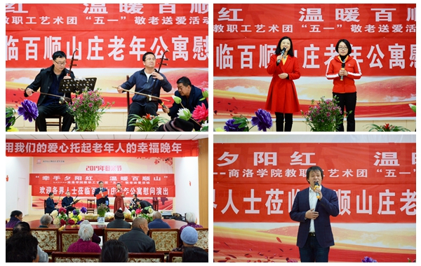 4月27日,商洛學院教職工藝術團走進商州百順山莊,開展“敬老送愛”慰問演出活動,為那里的老人們送去一場豐富多彩的文藝愛心大餐。