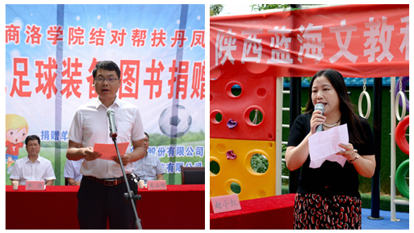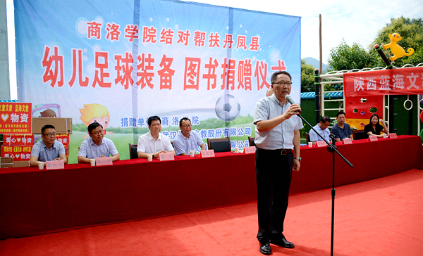 楊思飛代表丹鳳縣委、縣政府向關(guān)愛(ài)丹鳳縣幼兒教育的領(lǐng)導(dǎo)和愛(ài)心人士表示感謝,他在講話中指出,本次公益捐贈(zèng)活動(dòng),是商洛學(xué)院各位領(lǐng)導(dǎo)組織開(kāi)展“雙百工程”、踐行“聯(lián)幫聯(lián)扶”的具體行動(dòng),也是全社會(huì)參與大扶貧的生動(dòng)體現(xiàn)。他表示,商洛學(xué)院與丹鳳縣的交流交融源遠(yuǎn)流長(zhǎng),近年來(lái)在學(xué)前教育發(fā)展論壇、少兒足球培訓(xùn)、扶智扶志等方面給予了丹鳳縣有大的支持和幫助,希望學(xué)校一如既往地關(guān)注關(guān)心丹鳳的發(fā)展,持續(xù)深化戰(zhàn)略合作,對(duì)丹鳳縣教育扶貧工作給予更多更大的支持,助力丹鳳縣順利打贏脫貧攻堅(jiān)戰(zhàn)。