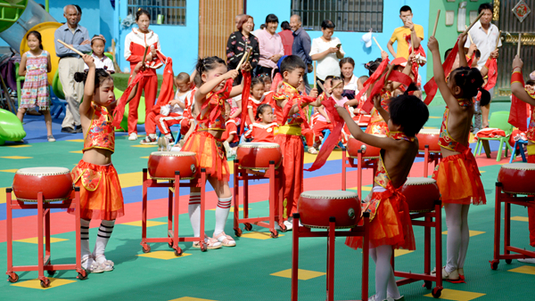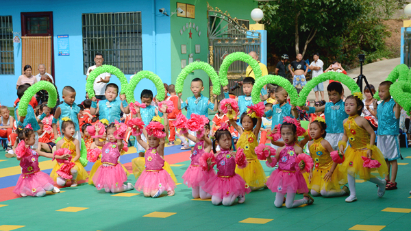 兩嶺幼兒園園長(zhǎng)米嬌致答謝詞。幼兒園小朋友們現(xiàn)場(chǎng)表演了精彩的鑼鼓舞和花環(huán)舞,并為嘉賓們送去愛(ài)心糖果、手工折紙等以表感謝。