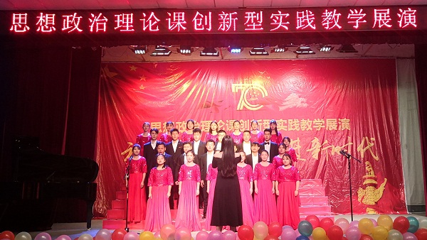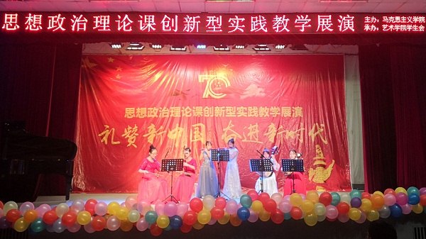 為慶祝中華人民共和國成立70周年,積極推進(jìn)習(xí)近平新時代中國特色社會主義思想進(jìn)教材、進(jìn)課堂、進(jìn)頭腦,認(rèn)真落實黨和國家對高校思想政治理論課建設(shè)提出的各項要求,增強思政課教學(xué)的吸引力和感染力,9月28日晚,由馬克思主義學(xué)院主辦的“禮贊新中國,奮進(jìn)新時代”思想政治理論課創(chuàng)新型實踐教學(xué)展演活動在大學(xué)生活動中心舉辦。教務(wù)處相關(guān)負(fù)責(zé)人,馬克思主義學(xué)院全體教師及本學(xué)期部分思政課教學(xué)班級學(xué)生400余人共同觀看了此次展演。