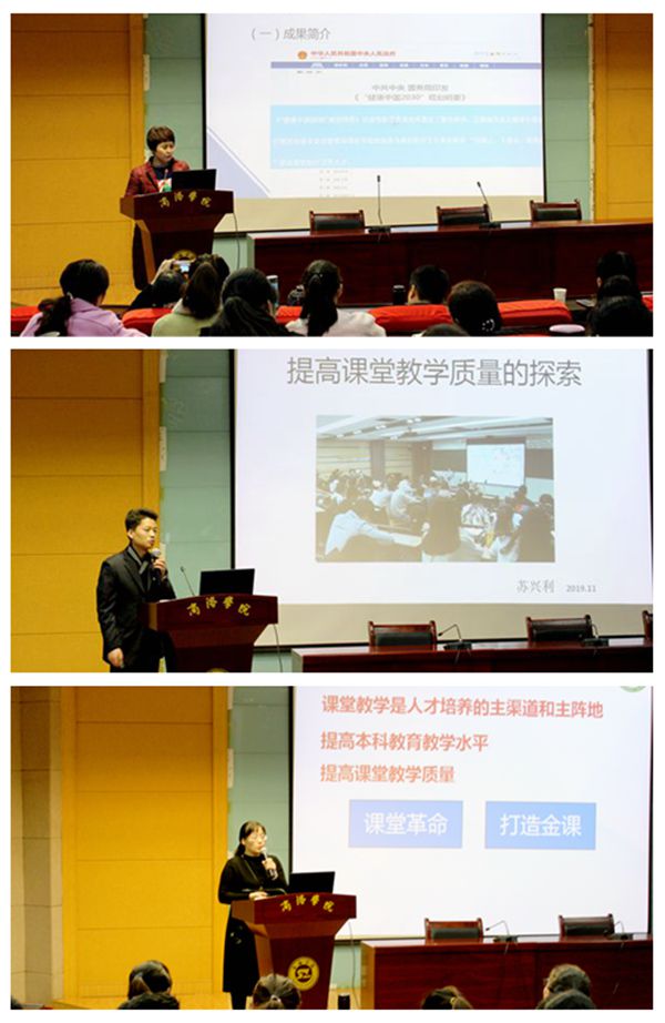 報告會上,和新盈作了題為《基于OBE教育理念,面向基層卓越醫生培養的形態實驗教學新體系構建與實踐》的報告,從宏觀角度向大家展示了如何選題、組織、申報教學成果獎;蘇興利作了題為《提高課堂教學質量的探索》的報告,他結合自己的切身體會,與大家分享了如何做一名好老師,如何上好一堂課;鄭慧媛以《對分課堂在胚胎學教學中的應用與探索》為題,向大家講解了陜西省第一屆課堂教學改革創新大賽的比賽形式、參賽準備,并為大家進行了現場示范教學。三位專家的報告精彩紛呈、形式多樣,與會教師紛紛表示,本次報告會啟發了思路,開拓了視野,今后將努力汲取專家報告的精華為我所用,不斷提高課堂教學水平。