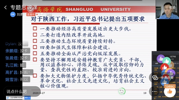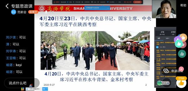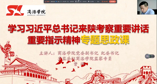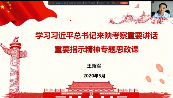 4月20日至23日,習(xí)近平總書記來陜考察并發(fā)表重要講話,為陜西譜寫新時代追趕超越新篇章鼓舞了士氣、指明了方向,在全省人民群眾中引發(fā)了熱烈反響。學(xué)習(xí)好、宣傳好、貫徹好習(xí)近平總書記重要講話重要指示精神,是當(dāng)前和今后一個時期全校的首要政治任務(wù)。5月27日,按照校黨委的統(tǒng)一安排,我校7位校領(lǐng)導(dǎo)與2000余名青年學(xué)生“云端”共聚,以線上專題思政課的形式把學(xué)習(xí)習(xí)近平總書記來陜考察重要講話重要指示精神引向深入,在全校上下掀起新一輪的學(xué)習(xí)熱潮。