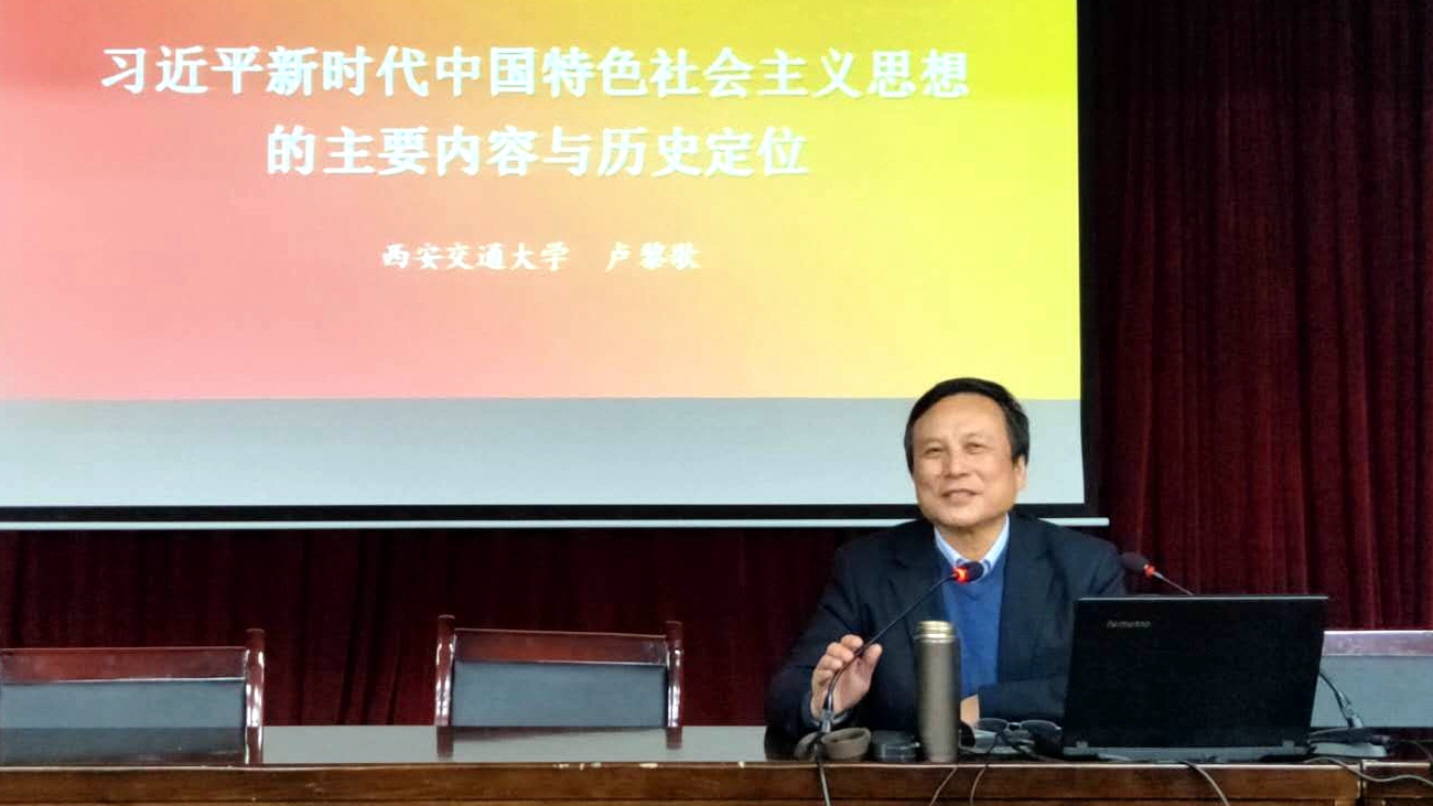 10月18日晚,西安交通大學馬克思主義學院博士生導師、陜西省教學名師、國務院政府特殊津貼專家盧黎歌教授,以“習近平新時代中國特色社會主義思想的歷史地位和主要內容”為題為我校馬克思主義學院全體師生作學術報告。