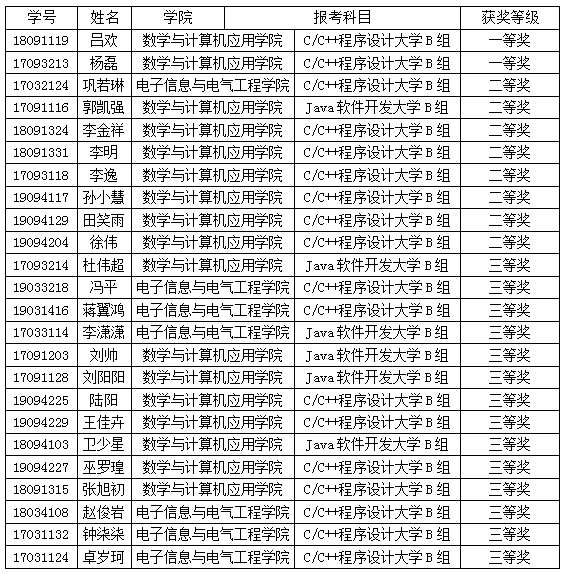 第十一屆藍橋杯大賽省賽我校獲獎學生名單
