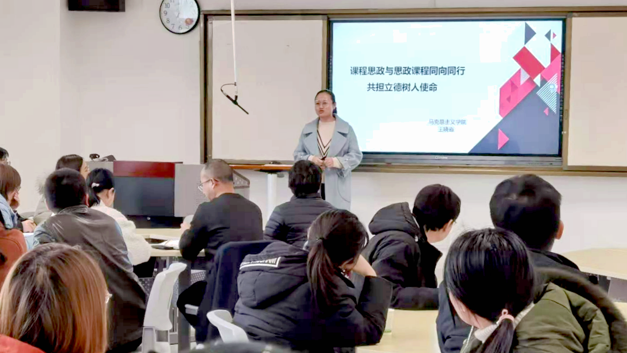 王曉霞根據《高等學校課程思政建設指導綱要》,按照習近平總書記在全國高校思想政治工作會議上的講話中對思政課程及課程思政的要求,以“課程思政與思政課程同向同行共擔立德樹人使命”為主題,從思政課程、課程思政、案例分析三個方面,具體分析了如何圍繞立德樹人根本任務,把專業課與思政課知識點融合,同向同行推進課程思政教學改革。