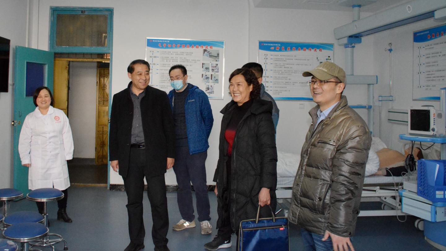 1月13日,商洛市大健康產(chǎn)業(yè)發(fā)展考核組來(lái)校考核2020年大健康產(chǎn)業(yè)發(fā)展工作。在市人大常委會(huì)社會(huì)建設(shè)工委主任楊桂英的帶領(lǐng)下,考核組實(shí)地考察了我校養(yǎng)老護(hù)理實(shí)訓(xùn)中心和康復(fù)護(hù)理實(shí)訓(xùn)中心,詳細(xì)了解了學(xué)校大健康產(chǎn)業(yè)相關(guān)工作開(kāi)展情況。副校長(zhǎng)王新軍陪同考察并主持考核會(huì)。科技處、教務(wù)處、健康學(xué)院、生物學(xué)院、經(jīng)管學(xué)院負(fù)責(zé)人參加考核會(huì)。