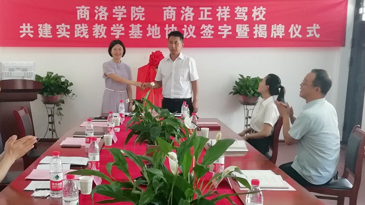 儀式上,劉寶盈、任繼峰共同為基地揭牌。教務處處長王怡與任繼峰分別代表學校與商洛正祥駕校簽訂協議。