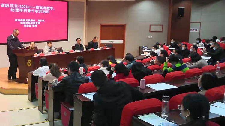 10月11日,由我校承擔(dān)的2021年省級教師培訓(xùn)項(xiàng)目新高考物理學(xué)科骨干教師培訓(xùn)項(xiàng)目、新高考數(shù)學(xué)學(xué)科骨干教師培訓(xùn)項(xiàng)目在我校舉行了開班典禮。副校長劉寶盈出席開班典禮。繼續(xù)教育學(xué)院院長樊景博、數(shù)學(xué)學(xué)科首席專家劉曉民副教授以及來自八個地市的100余名教師參加開班典禮。