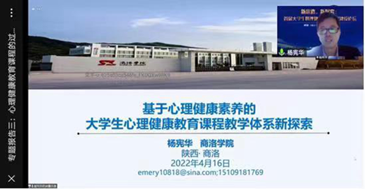4月16日至17日,中國心理衛生協會大學生心理咨詢專委會聯合國家社科基金重大項目“國民心理衛生素養及其提升機制與對策”項目組舉辦全國“新思路,新探索:首屆大學生心理健康教育課程建設論壇” 線上學術論壇,我校健康學院楊憲華副教授受邀在“專題報告”環節作交流發言。
